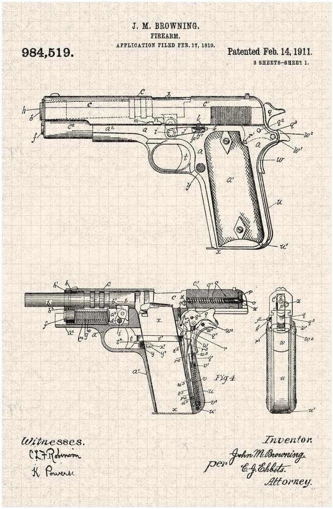 43 Top Images Browning Wall Decor - Handgun Browning Official Patent Blueprint Cool Wall Decor Art Print Poster 12x18 Poster Foundry